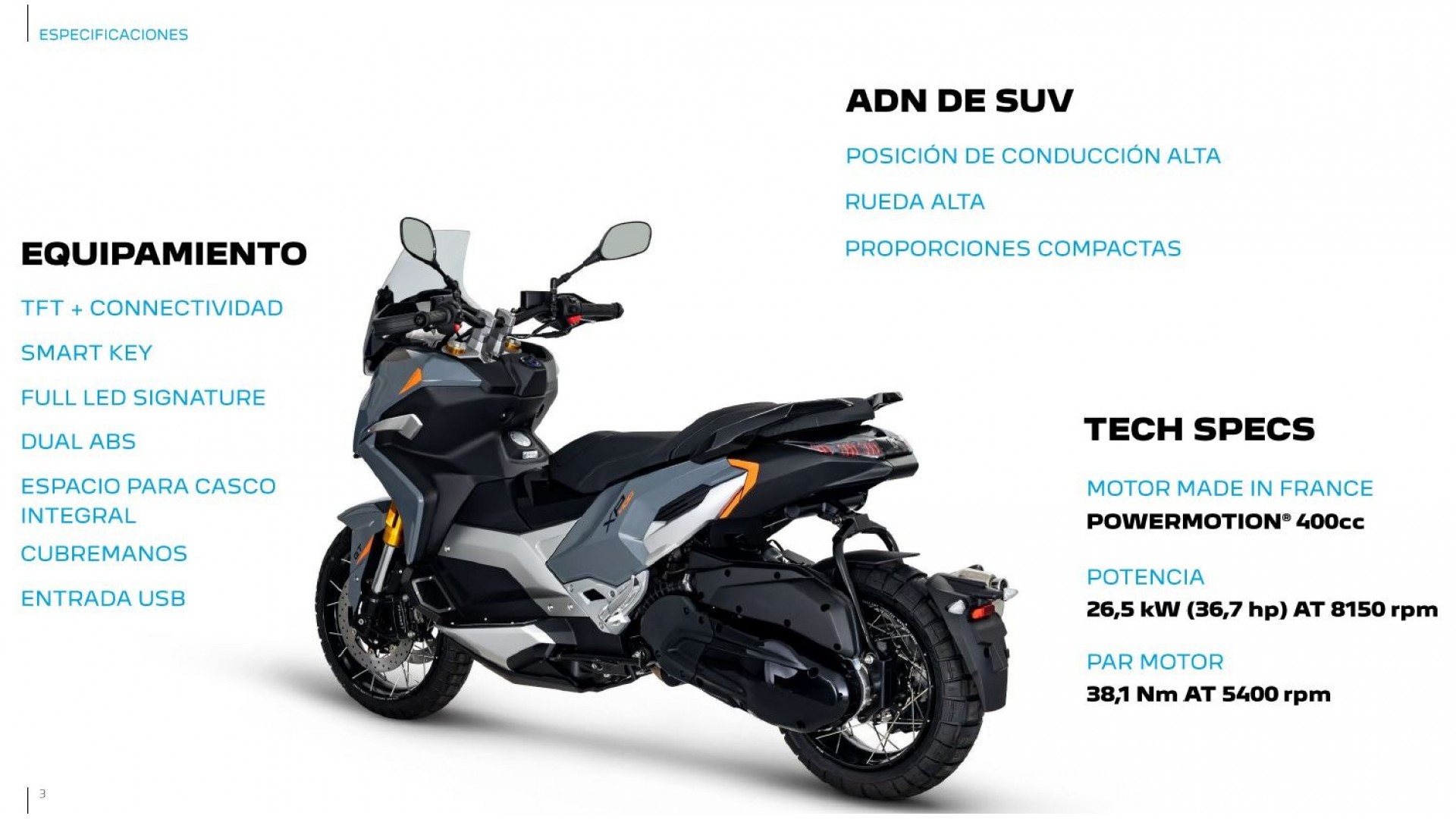 En 2023, la SUV estarà a l'alineació de Peugeot Motocycles amb XP400. Un vehicle potent, versàtil i audaç.