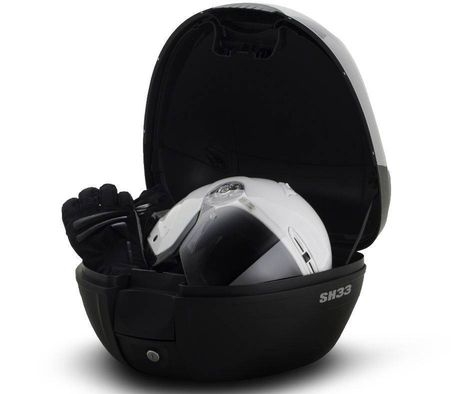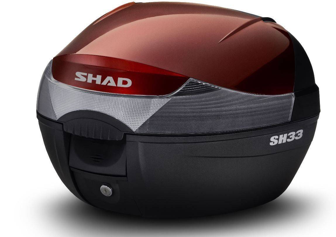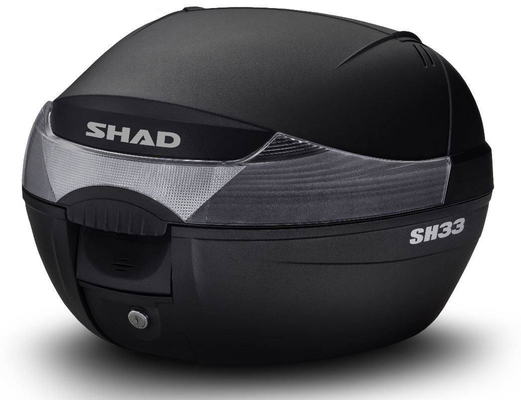 La SH33 és una maleta de moto compacta i pràctica, composta de polipropilè reforçat d'alta qualitat i amb capacitat per a guants i un casc modular. De formes corbes i catadiòptric fumat, és un bàsic en la gamma de SHAD. Disposa de la mida perfecte, ja que s'adapta tant a scooter com a motos de baixa cilindrada. Sense nervis entre frontisses i una curvatura semicircular a la part posterior de l'bagul, proporciona un major confort i ergonomia per al segon passatger.