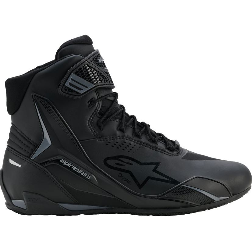 Amb innovacions de rendiment derivades de la rica història d'Alpinestars competint al nivell més alt de l'automobilisme, la sabata Faster-4 Drystar® utilitza una construcció superior de microfibra sense costures per crear un calçat de conducció encara més protector i còmode. Els Faster-4 són extremadament lleugers, transpirables i duradors i incorporen la tecnologia Drystar® d'Alpinestars, una membrana multicapa dissenyada per a la permeabilitat de la humitat, transpirabilitat i durabilitat que ofereix als motociclistes un rendiment 100% impermeable. Amb la seva sola reforçada que proporciona millor estabilitat i més comoditat, les sabates Faster-4 són el calçat esportiu de conducció perfecte.