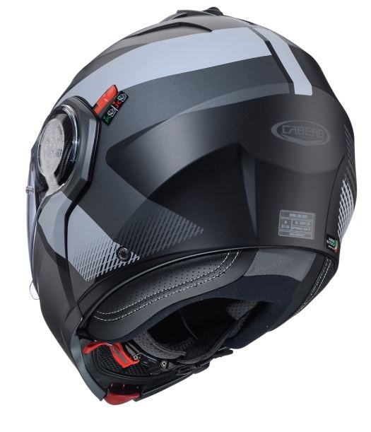 ADVERTIMENT: Aquest casc no es pot utilitzar als EUA ni al Canadà. El casc ha estat homologat dacord amb la normativa europea ECE/ONU 22.06 i, per tant, el seu ús està permès únicament en països on estigui en vigor aquesta normativa. Els models poden variar i no estan disponibles a tots els països. Caberg es reserva el dret de fer qualsevol canvi que consideri oportú degut a l'estat de la tècnica o als requisits d'homologació sense avís previ.