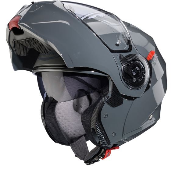 DUKE EVO és l'evolució del casc DUKE de Caberg, homologat ECE 22.06, amb teixits transpirables i mecanismes nous d'obertura de la mentonera i la visera. Equipat amb el sistema Double Visor Tech i compatible amb el PRO SPEAK EVO, ofereix diferents colors i versions gràfiques.