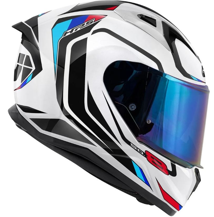Casc Givi 50.8 Mach1 Blanc / Negre / Vermell. Casc integral homologat segons la nova normativa ECE 22/06. Fabricat en tecnopolímer, disposa de visor solar integrat, d'un eficaç sistema de ventilació i d'uns encoixinats interiors molt confortables. El seu ús és ideal per a usuaris de motos esportives.