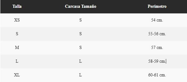 Dues mides de carcassa o calotta. Excel·lent comoditat per a totes les talles.