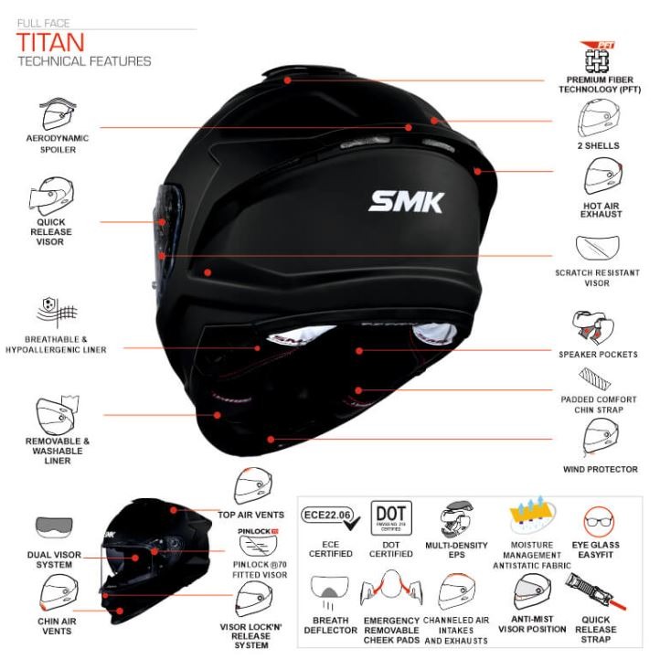 TITAN THE PANTHER és el casc esportiu de la fulla-face designat en la realització d'una calota feta de Premium Fiber Technology (PFT) que ofereix extremadament luxe i seguretat per a entusiastes del turisme.