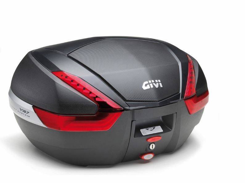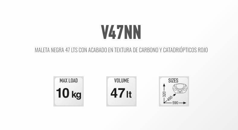 MALETA GIVI V47NN NEGRA 47 LTS AMB acabat en TEXTURA DE CARBONI I catadrióptrics VERMELL.