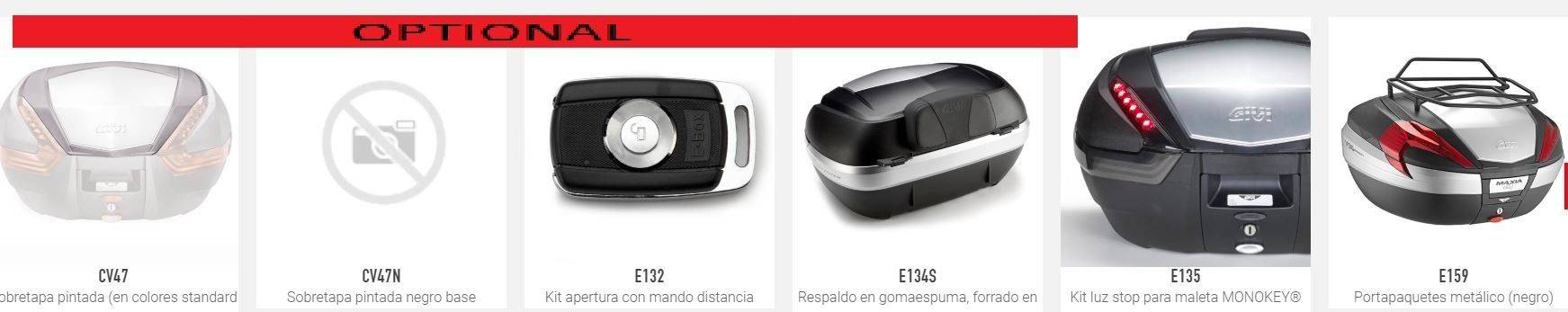 Maleta Givi V47NN amb capacitat per a 47 litres i dos cascos integrals, amb sistema d'ancoratge monokey i sobretapes intercanviables.