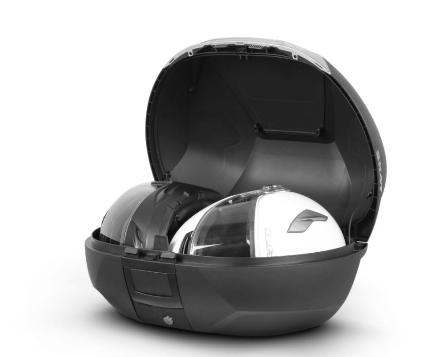 El bagul SH47 resisteix temperatures extremes i protegeix la càrrega interior de la neu i la pluja. Fabricat amb polipropilè reforçat d´alta qualitat, té capacitat per guardar dos cascs integrals, més accessoris de viatge.