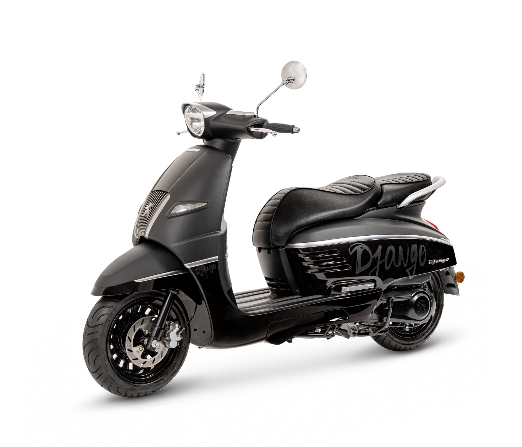 EL SCOOTER NEO-RETRO SEGONS PEUGEOT Motocycles Línies modernes, evocació assumida de el mític Peugeot S55, el mix neo-retro de Django no passa desapercebut pels carrers. Amb la seva barreja de materials negre brillant i negre mat, conquistaràs la ciutat.