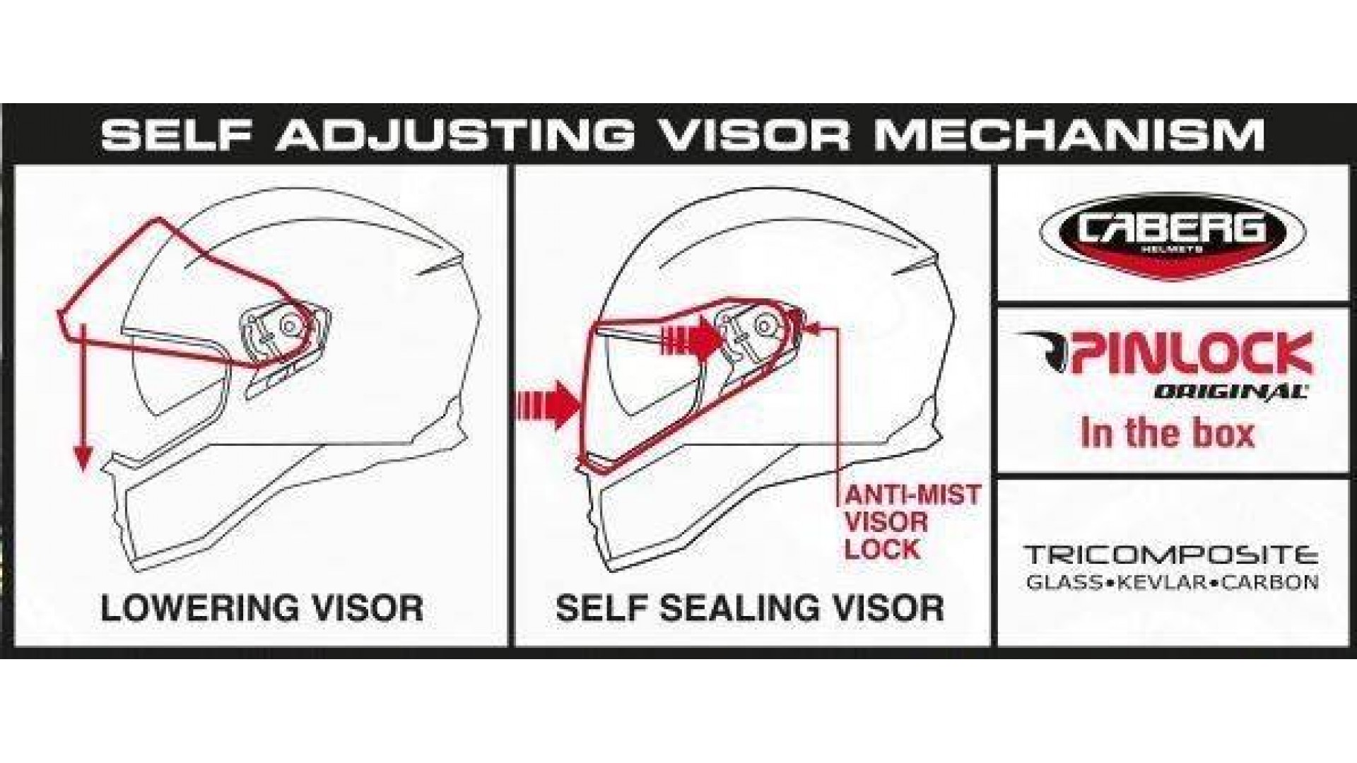 Este casco deriva, de hecho, de la experiencia del departamento de competición y pilotos de la compañía de Bérgamo, que llevan en diversas competiciones versiones gráficas completamente originales del DRIFT EVO. La cáscara, producida en dos tamaños (pequeña para las tallas XS a M y grande para los tamaños L a XXL) y combinada con un interior de espíritu innovador, es capaz de ofrecer un equilibrio perfecto entre confort y granel. El spoiler trasero da un diseño agresivo, mejora la aerodinámica a velocidades más elevadas y reduce la turbulencia y el ruido. Los interiores también adoptan una almohada de nueva generación, que proporciona un ajuste aún más envolvente y preciso; a petición se pueden sustituir los interiores con los de tamaño superior o inferior, permitiendo así una perfecta personalización. DRIFT EVO está equipado con un mecanismo de visera de liberación rápida que ajusta automáticamente la posición de la visera para adherirse perfectamente con el borde de la ventana. Gracias al doble movimiento de muelle del mecanismo de visera, ya no será necesario el ajuste manual de la visera para evitar la infiltración de agua ni de aire entre la visera y el borde. En la parte izquierda del mecanismo de la visera hay una palanca que permite bloquear a una distancia del borde de unos 0,5cm para evitar o eliminar el condensado que absorbe efectivamente el viento durante la circulación; también permite tener un flujo de aire en la cara dirigido para no molestar ni siquiera las velocidades más altas. La palanca de bloqueo excluye la posibilidad de que la visera se abra durante la conducción o durante una caída.